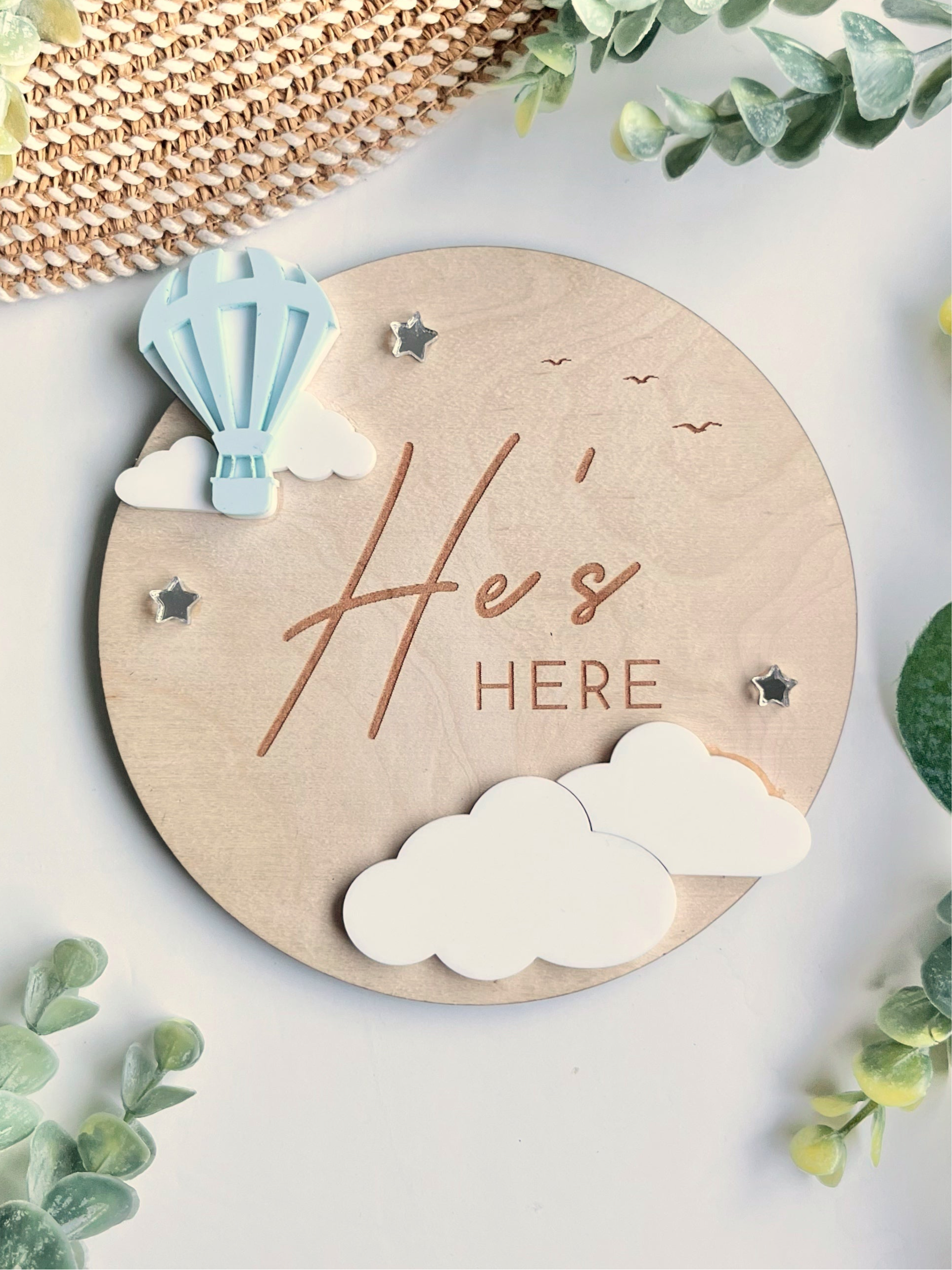 Up, up, and hello! Announce your baby’s arrival with our charming hot air balloon plaque — whimsical, sweet, and perfect for those first memories. ☁️